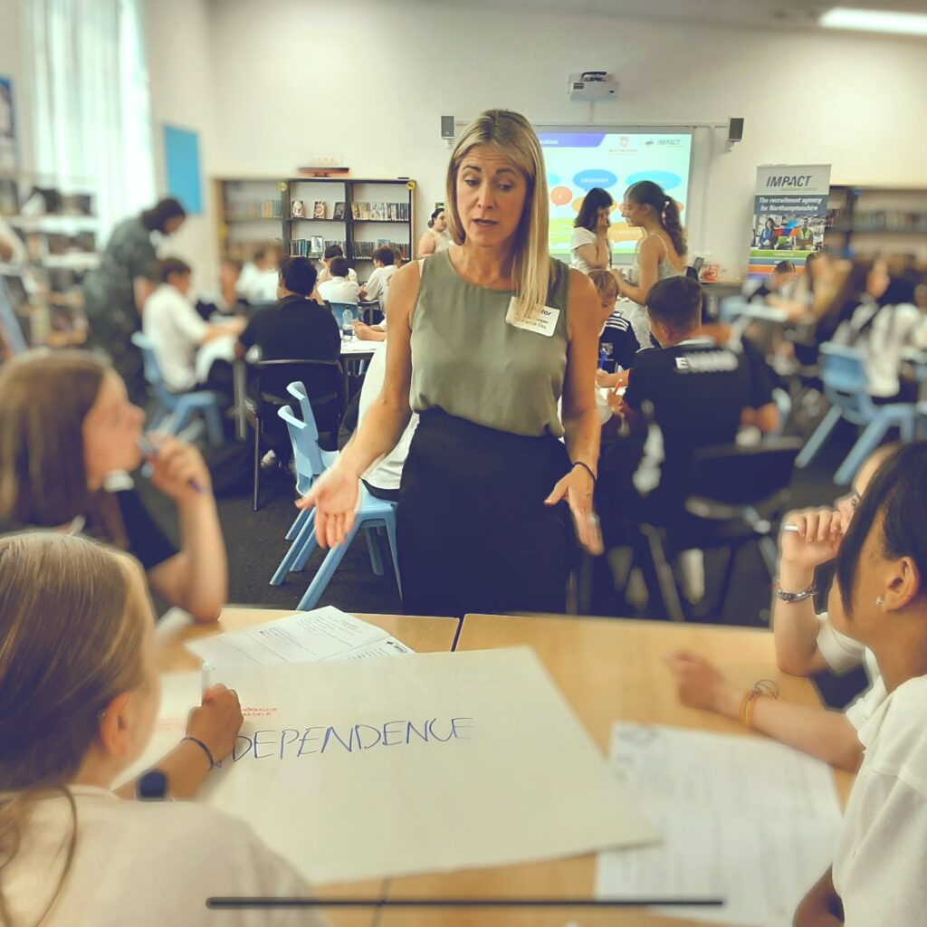 On my third day, I joined one of the Impact commercial team, Ellie, and Angela as they visited Moulton secondary school for a workshop on interview preparation. The students would later take part in mock interviews by local employers, to demonstrate what they had learnt. Our workshop focussed on how, regardless of a lack of real ‘work experience’, they could confidently demonstrate their soft skills to potential employers- such as independence, time management, communication, and team skills. We had a bit of fun where I demonstrated what not to do in an interview- testing the student’s observational skills! Then there were activities where the students got stuck in and thought about their own skills. They all seemed to enjoy the workshop and were really engaged and enthusiastic (confirmed later when we had very positive feedback from the workshop).